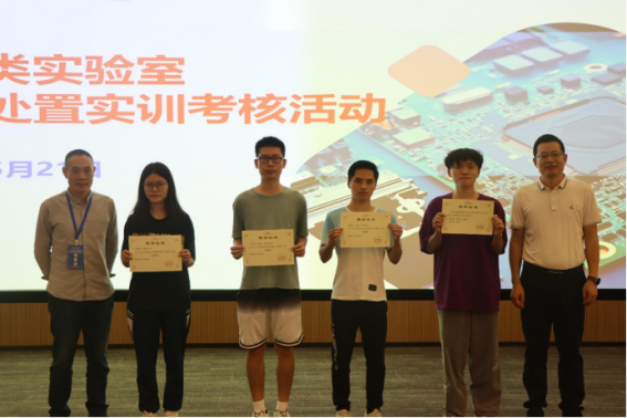 专家们为在考核活动中获得前六名的同学颁发“实验室安全达人”奖状
