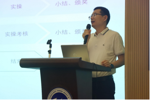 华工专家阮涛老师和张馨月老师就《化学安全类基础知识》和《化学实验室常见突发事件处置方法及C级防护穿戴演示》开展专题培训。在随后的考核环节,考生们前往3间实验室实地考核气瓶类泄露、个人防护穿戴、个人受伤急救预处理等应急处置能力。