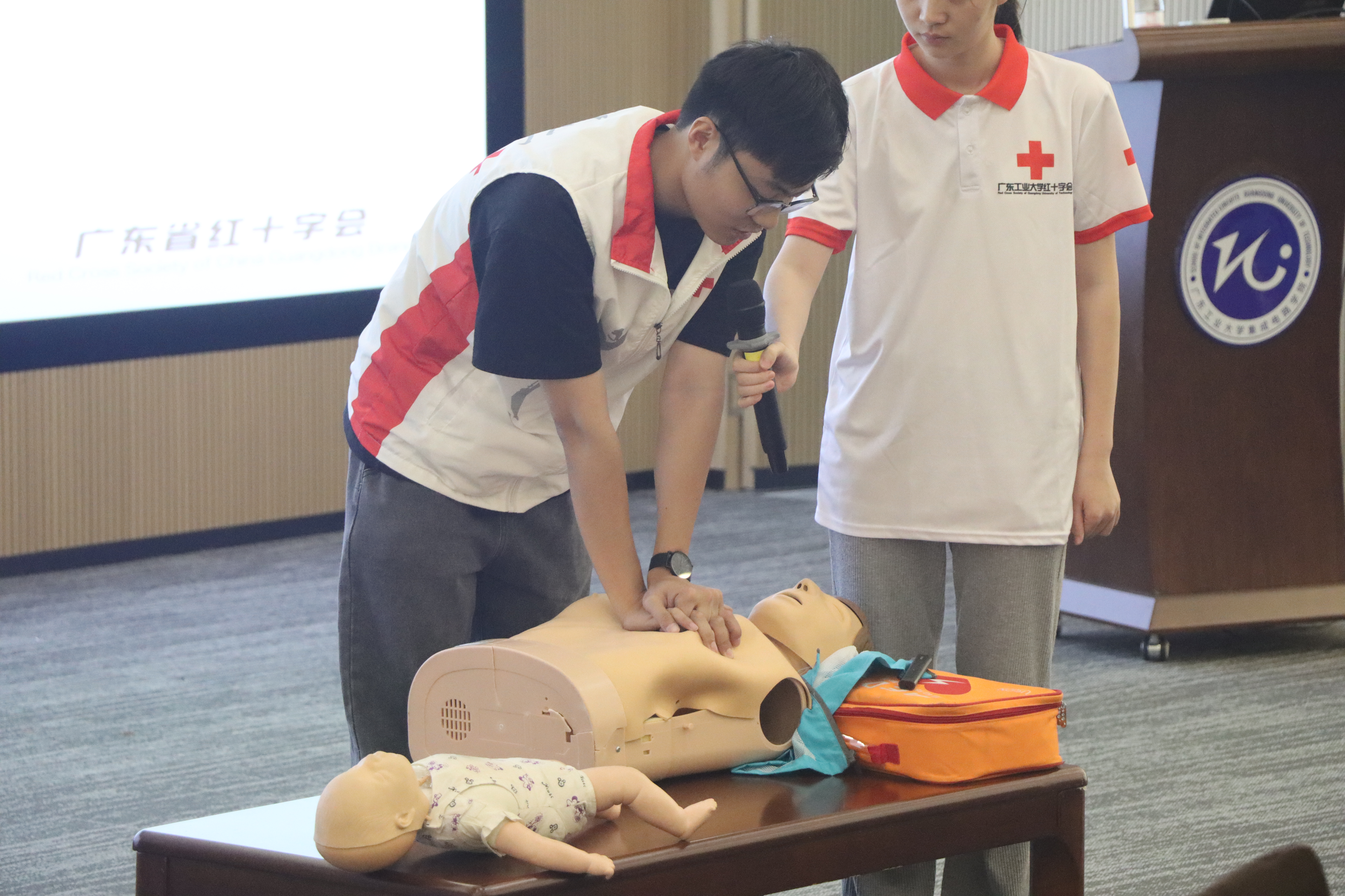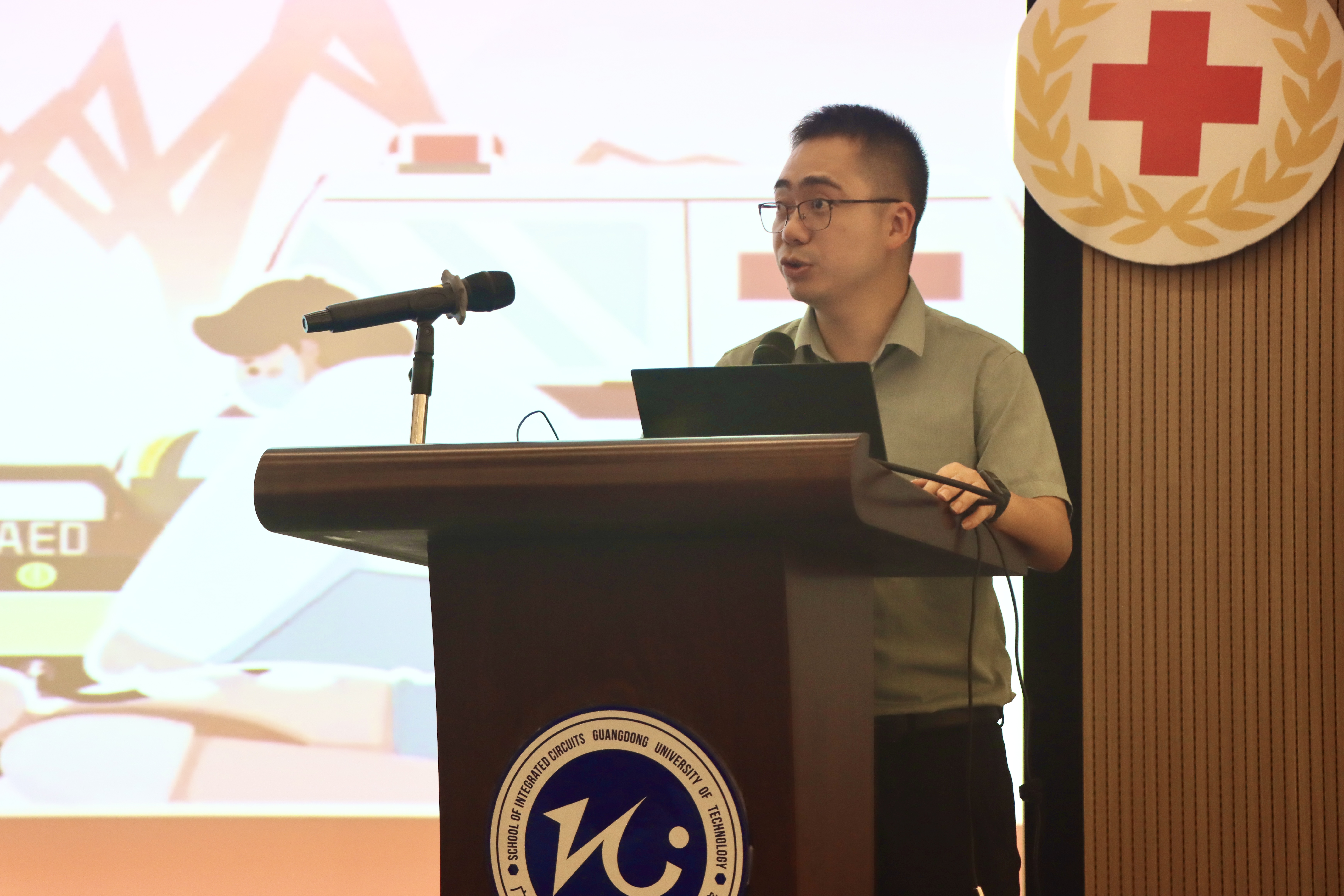 致辞,并对广东省红十字会、广东省红十字会应急救护志愿服务二队和学校红十字会的鼎力支持表示衷心感谢。他强调,急救技能是每个社会成员应具备的基本素养,对于保障个人和他人的生命安全具有重要意义,希望各位老师同学能够将所学知识运用到实践中,为校园带来更多的安全和希望。