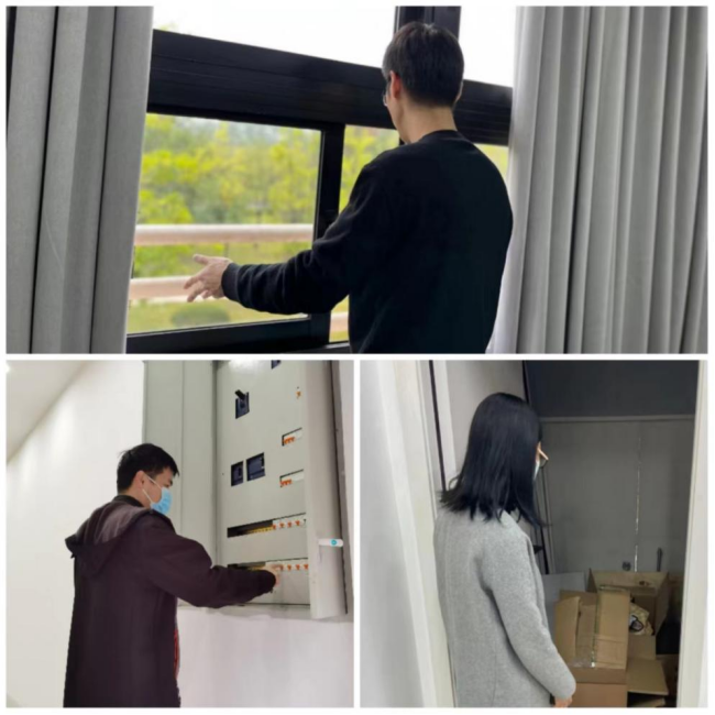 实验室整体运行良好,各类设施放置规整,水电使用规范,同时也发现个别实验室存在易燃物品堆放、消防通道堵塞、排插和电脑主机等放置不规范、门窗损坏等问题。检查组联合相关实验室负责人及物业对现场能解决的问题当场解决。对不能现场解决的问题,检查组对发现的问题进行了现场记录、拍照,并提出限期整改的意见和要求。