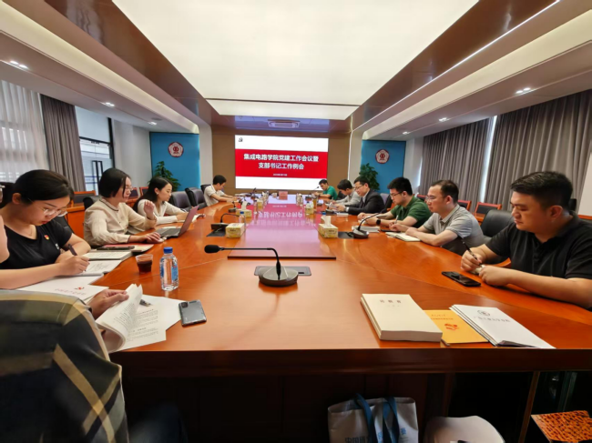 随后,石宇杰传达了全省教育大会精神。他表示,各支部要聚焦“教育现代化支撑高质量发展”核心任务,深化产教融合,积极服务地方经济发展,在科研攻关、教书育人中发挥党建引领作用,在粤港澳大湾区集成电路产业发展与学校高水平创新型大学建设中彰显“集成担当”。