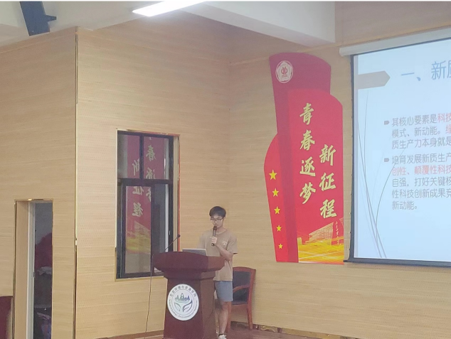周志雄同学代表youjizz二组进行了汇报,他表示,具有高科技、高效能、高质量等特征的新质生产力拥有新时代所面对的机遇与挑战,而重要的是我们青年学子在面对这新背景下该如何应对。