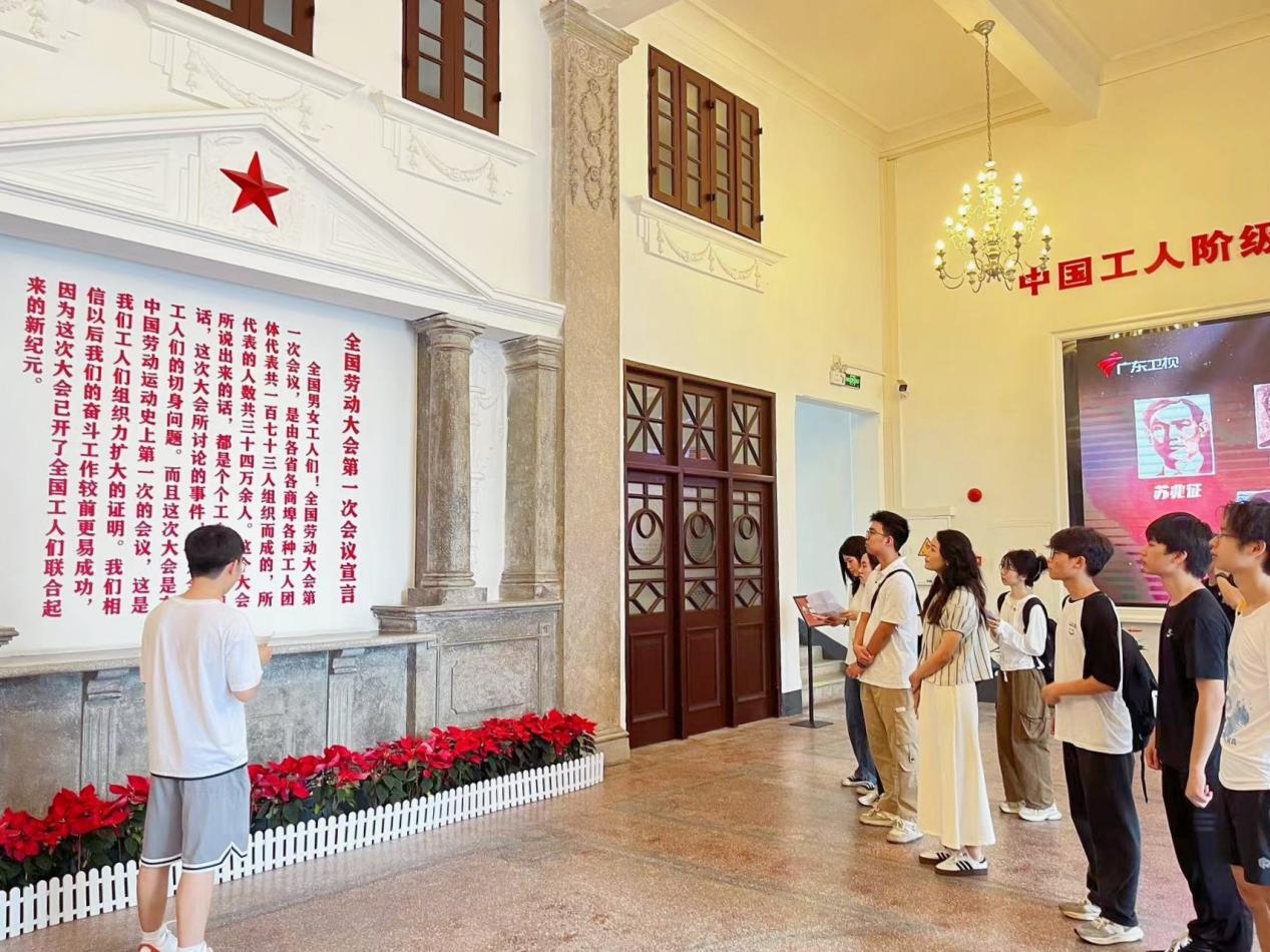 在参观过程中,党支部成员们有幸体验了一次生动的历史重现,支部党员主动担任讲解员,生动讲述了大会的历史背景和意义。同志们跟随支部讲解员的脚步一起走进那一段波澜壮阔的历史时光,感受这片土地背后蕴藏的红色力量。从国际工运的曙光到劳动盛会对使命的承担,再到工运高潮的推进,每个环节都体现了中国工人阶级在旧社会中争取权益的决心和勇气。广州作为英雄城市,其丰富的红色工运史迹更是让同志们深感骄傲和鼓舞。