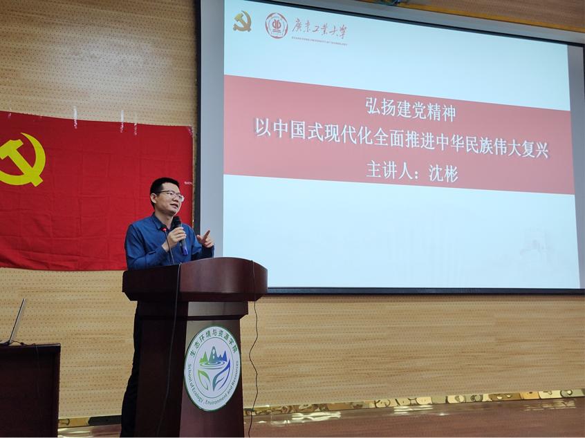 开班仪式结束后,沈彬书记为学员们讲授第一堂理论课:以“弘扬建党精神,以中国式现代化全面推进中华民族伟大复兴”为主题,围绕“学习宣传贯彻党的二十大精神的重大意义”、“全面准确学习领会党的二十大精神的几个方面”、“弘扬建党精神”、“中国式现代化的科学内涵及本质要求”、“中国式现代化的动力”、“中国式现代化的世界意义”六个方面展开阐述,对“坚持真理、坚守理想”,“践行初心、担当使命”,“不怕牺牲、英勇斗争”,“对党忠诚、不负人民”等建党精神做了着重讲解,同时沈彬书记聚焦“为什么要提出中国式现代化?”“中国式现代化‘特’在哪里?”两个问题,对“中国式现代化的科学内涵及本质要求”进行解答,指出中国式现代化是中国共产党领导的社会主义现代化,既有各国现代化的共同特征,更有基于自己国情的中国特色。沈彬书记还从入党誓词的演变进一步强调了对党忠诚的重要性。