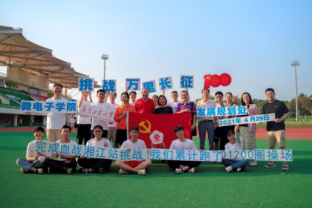 师生累计长征圈数已达1200圈。该挑战活动中包含13个长征中的关键节点,累计跑步公里数,每当到达相应的节点,则会举行对应的纪念活动。按照万里长征活动的规划,长征圈数达1200圈即开启本挑战活动的第一个节点:血战湘江站点。