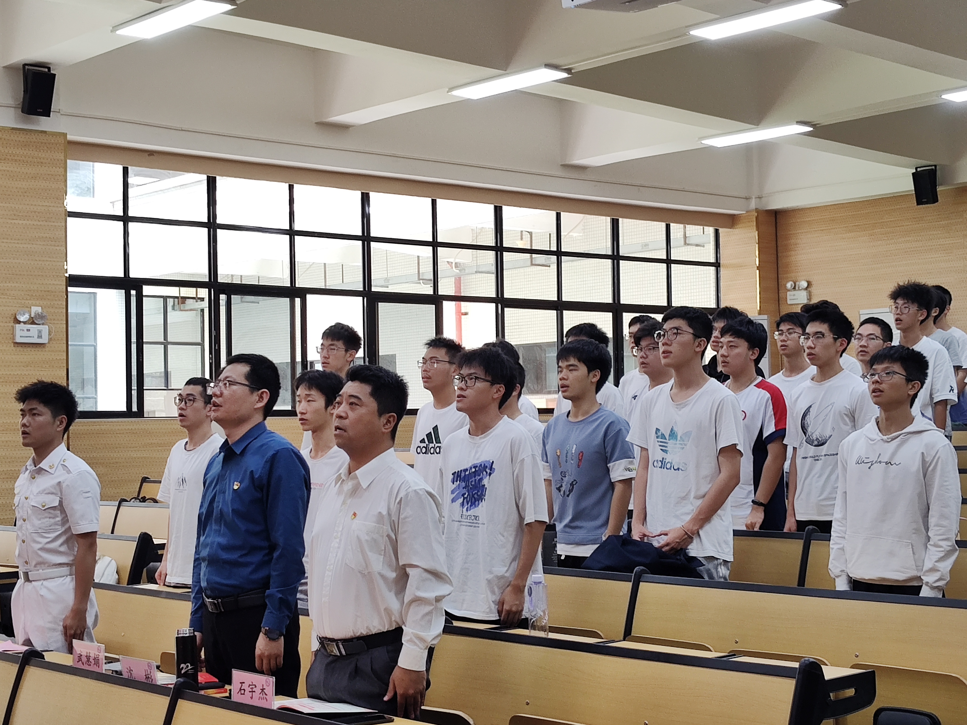 全体起立奏唱国歌后,youjizz学员代表郭泽镇同学从他的军旅生涯阐释了“两条红线”的重要意义,并结合邱学青校长在思政第一课中的讲话号召当代大学生在新时代新征程上要争当“硬核青年”,甘脚踏实地,敢仰望星空,拒绝躺平摆烂。