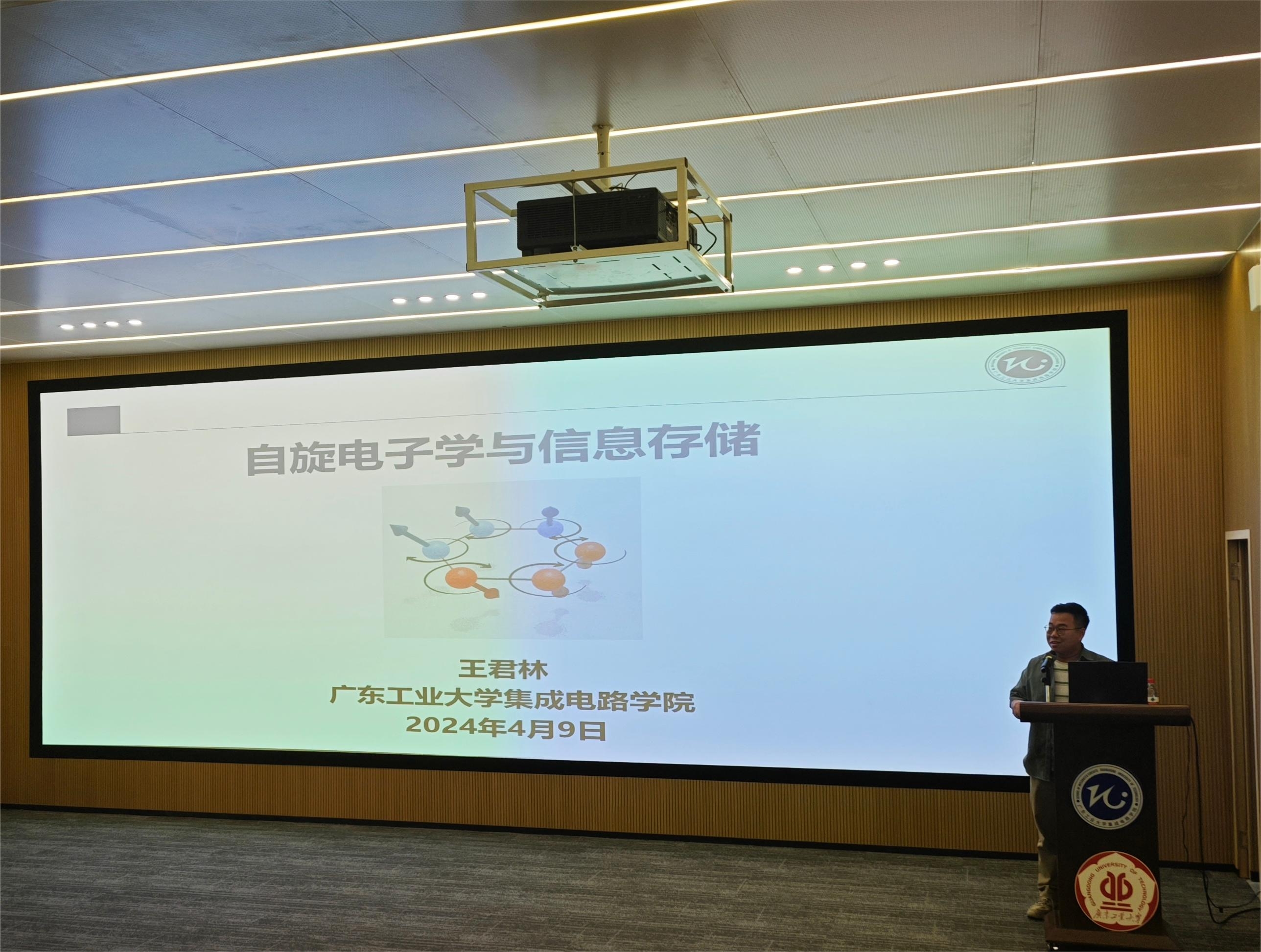 自旋电子学领域的青年学者王君林老师作主题为“自旋电子学与信息存储”的讲座。本次讲座由辅导员郭汶林主持。