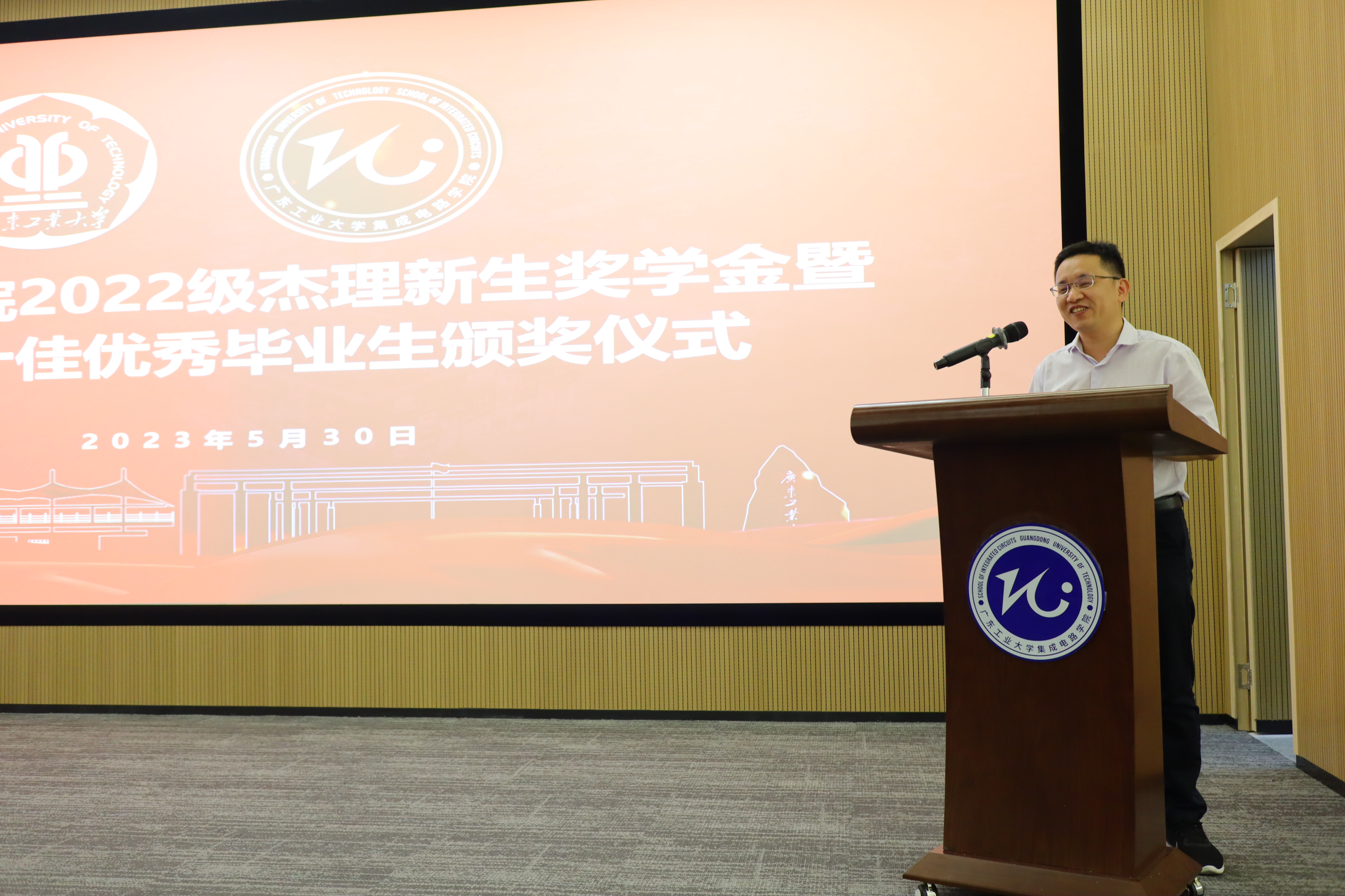 熊晓明院长为本次颁奖仪式开场致辞,他对珠海市杰理科技股份有限公司表示由衷地感谢,对获得新生奖学金以及十佳优秀毕业生的同学表示祝贺,希望全体2022级学生以他们为榜样,向先进学习,不断提升自我。
