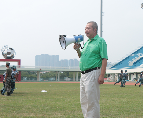 对精心筹备军训工作、指导训练的教官们表示诚挚的感谢,对在炎炎夏日中坚持参训的同学致以亲切慰问。他肯定了同学们在军训中的吃苦耐劳品质。他提到,军训增强了同学们的纪律意识,集体意识,培养了责任感,他鼓励同学们要将这份韧劲用到学习中。