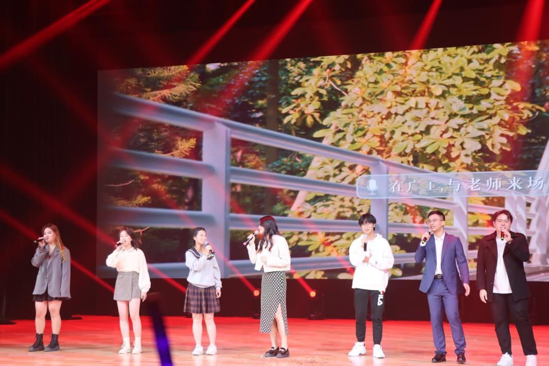 第一篇章“辞旧迎新”用活力四射的舞蹈与舞台剧引导新生们回忆童年,又以动人的歌声鼓励新生们迎接大学崭新生活、追求美好未来;第二篇章“青春舞动”以校友的瑜伽表演开场,民族乐器配合歌声一同展现大学生活的丰富多彩,热情洋溢的舞蹈舞出青春活力;最后的篇章“梦想起航”以鼓励新生追逐理想为主旨,通过极具力量的舞蹈、女声独唱以及诗朗诵向新生们传递不惧困难逆光前行的精神,鼓励新生在接下来的大学学习生活中力争上游,砥砺前行,同时也为我校本科办学65周年送上逐梦启航的祝愿。在三个篇章中间还穿插了两次抽奖环节,奖品分别由广州茉那瑜伽有限公司、youjizz 花都校友会校友企业、鼎湖山泉集团、阡陌茶具有限公司、广州动钵电子有限公司、卡朋西餐厅的校友们赞助。晚会最后在两届校园十大歌手冠军与两院辅导员老师们的歌声中圆满结束。
