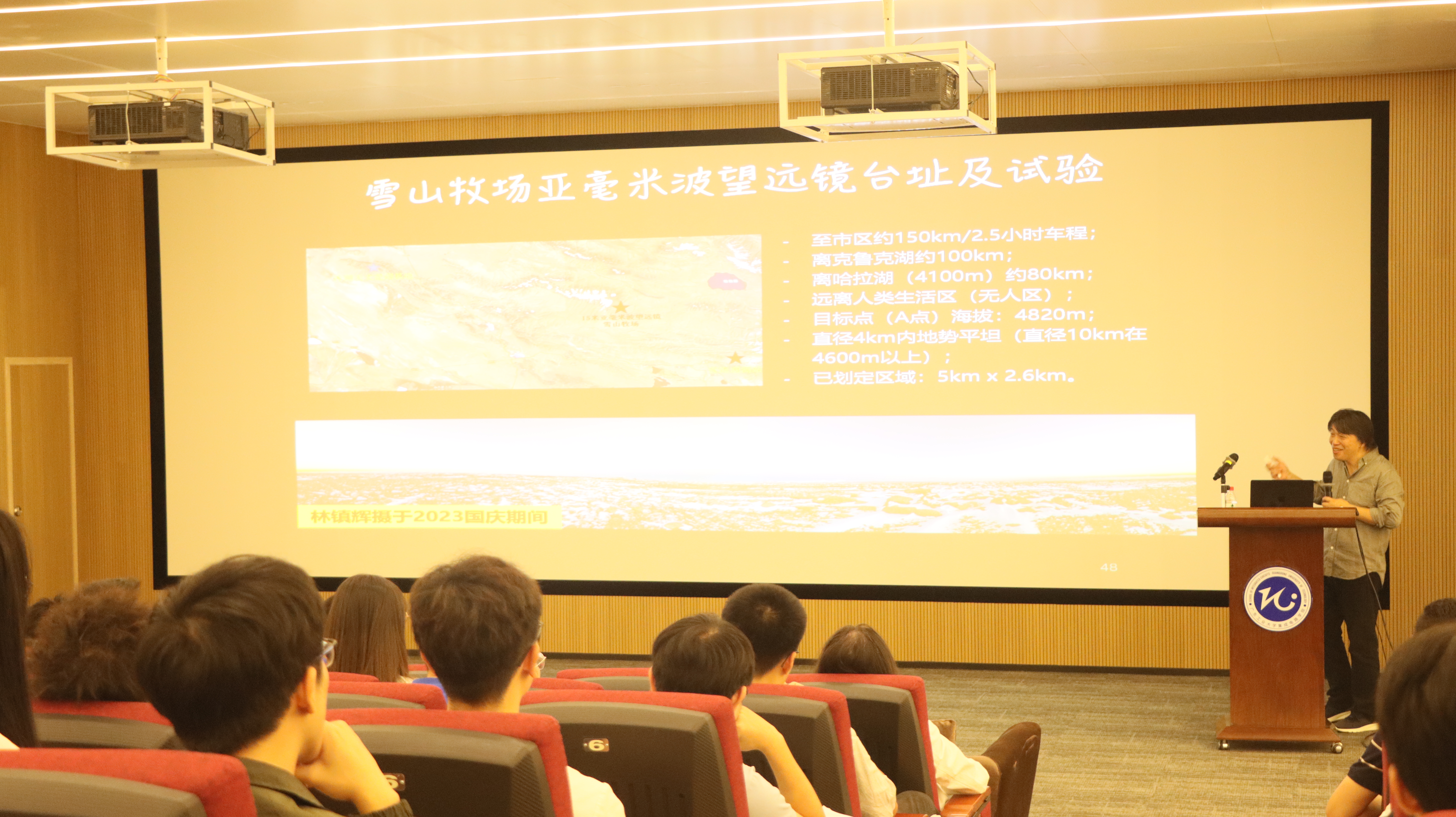 史生才院士以一段自己亲身经历的南极科考视频,引入主题,激发同学们的兴趣,用通俗易懂的语言和例子,从太赫兹、超导与天文探测等方面讲述了与射电天文相关的研究现状以及成果。同时通过呈现美丽壮观的星云照片,介绍了射频天线在天文观测中的运用以及未知的应用领域,鼓励师生们深入研究射频领域,挖掘更多的可能性。