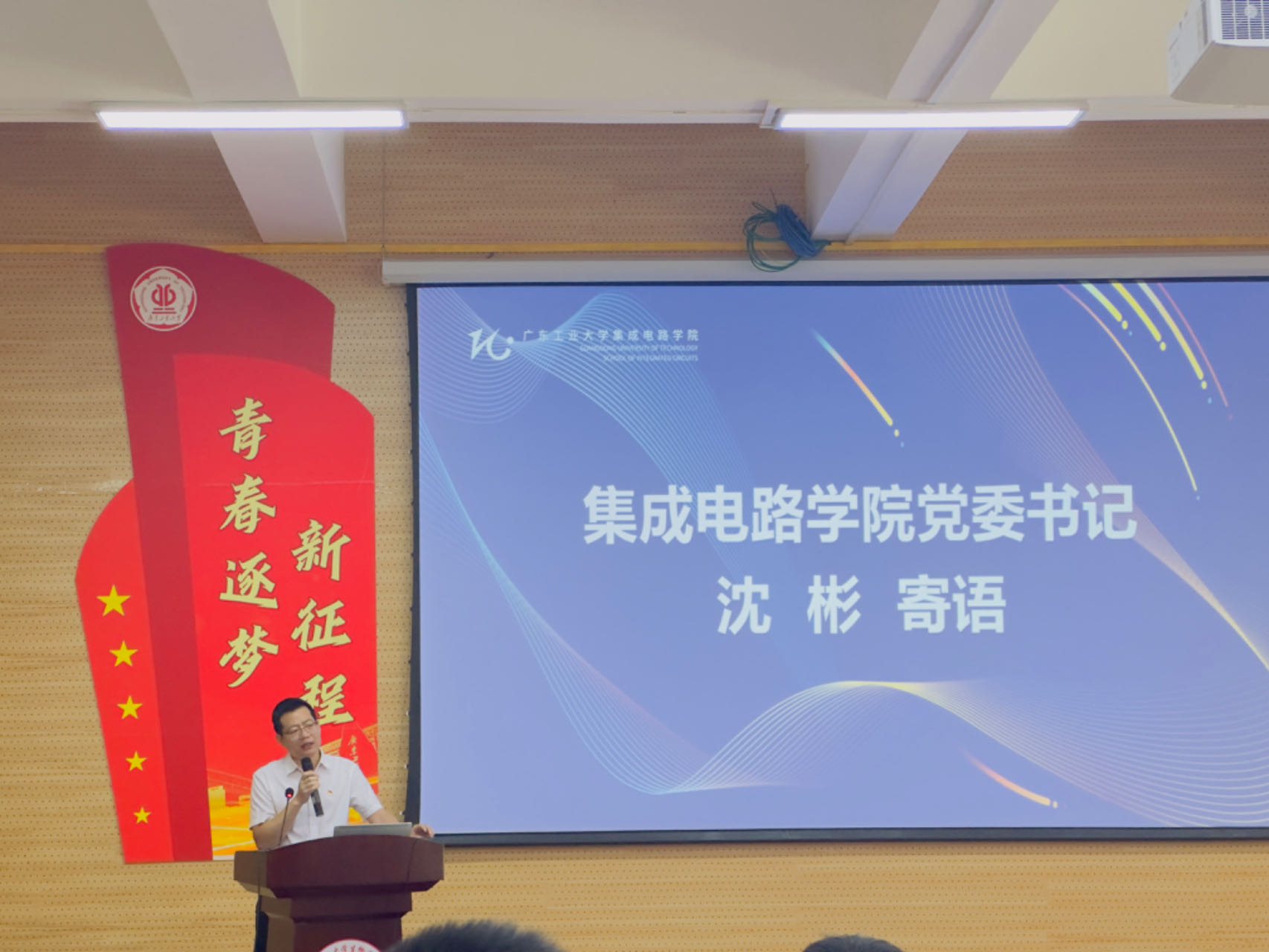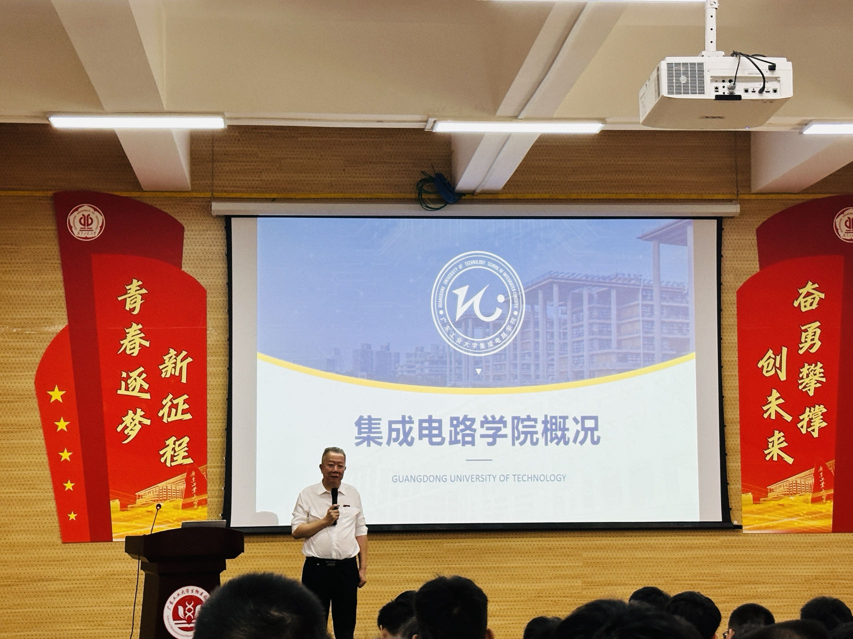 随后,郭春炳教授作为研究生导师代表发言,他希望新生们能够在人生新征程中“迈向新台阶,迎接“芯”的挑战”。郭教授详细介绍了中国集成电路行业的发展现状与应用前景,激励同学们牢牢抓住集成电路行业的现实机遇,快速找准自己的定位和方向,在扎实学习基础知识的同时做到知行合一、融会贯通,努力提高自己的实践动手能力,迎接挑战,奋勇向前。