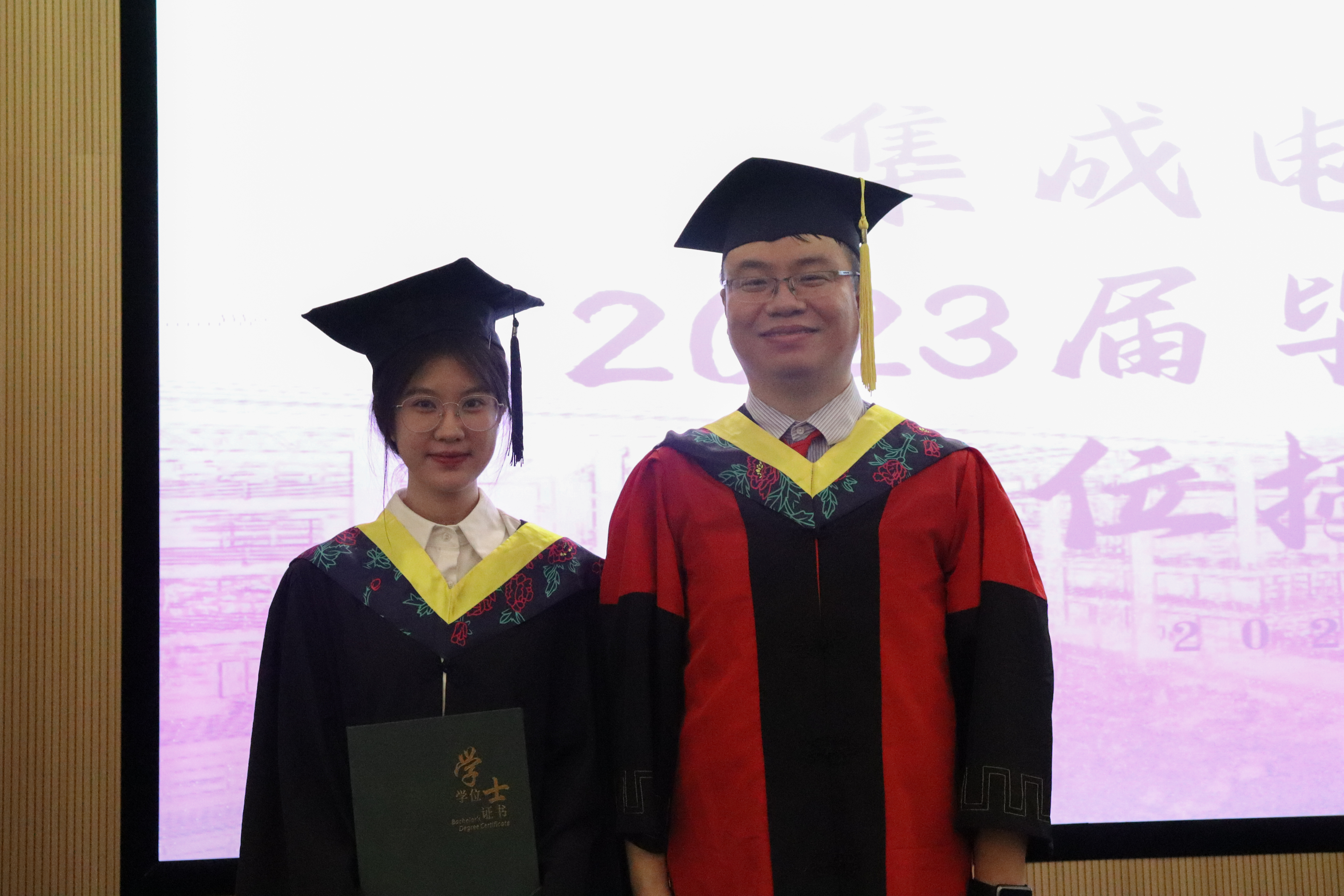 2023届毕业典礼暨学位授予仪式在理学馆学术报告厅隆重举行,院长熊晓明,院党委书记沈彬、副书记石宇杰,副院长蔡述庭、刘远,微纳电子学系教授魏爱香,集成电路工程系教师代表符哲,校友代表周仲良,全体班导师,各年级辅导员以及2023届全体毕业生出席本次毕业典礼暨学位授予仪式。典礼由youjizz
