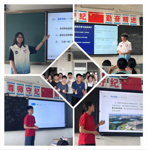 队员们围绕国家资助政策、反校园欺凌、心理疏导、大学生活和学习经验分享等内容,制定了详细的课程表。通过介绍丰富多彩的大学生活,激发高三学子们对大学的渴望,希望能给他们带来学习的“源头”,用自己亲身经历的学习经验,鼓励他们认真备考。