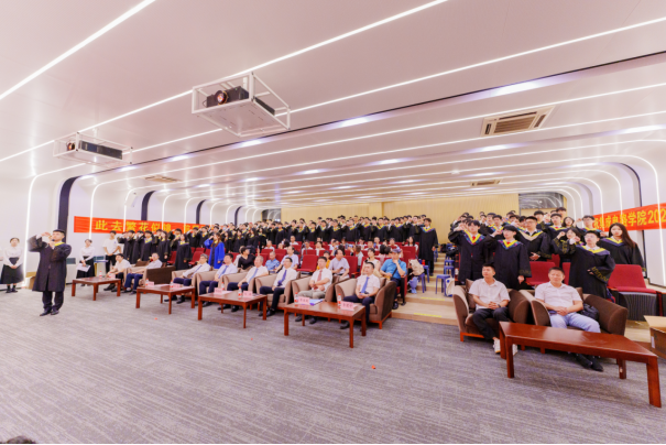 接着,全体毕业生在学生代表郭泽镇的领誓下,一起庄严宣誓,许下“用聪慧和才智奉献社会,以品格和精神影响他人,用青春和热血强芯报国,让母校、母院以我为荣!”的铮铮誓言。