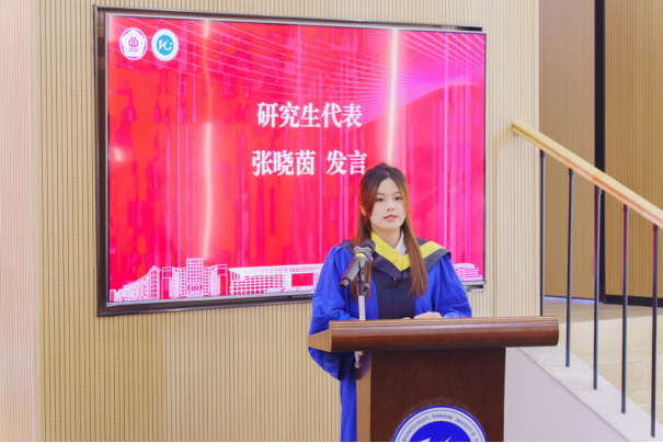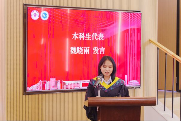硕士毕业生代表张晓茵和本科毕业生代表魏晓雨分别回顾了在校学习生活的点点滴滴,表达了对母校的眷恋与祝福,展示了对未来的信心和期许。他们代表2024届全体毕业生向youjizz