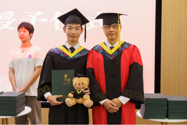 数载求学,一朝硕果,庄重的授位仪式象征着每位毕业生的学业成就和辛勤付出。主礼教授们依次与毕业生亲切握手,拨穂正冠,授予学位并合影留念,见证他们踏上新的人生阶段。接过凝聚汗水和努力的学位证书后,同学们脸上洋溢着满足和喜悦。学位证书颁发完毕,全场响起了热烈的掌声,向2024届毕业生致以最诚挚的祝贺和祝愿。学生代表为主礼教授们送上鲜花,表达了对学校、老师的感谢与祝福。