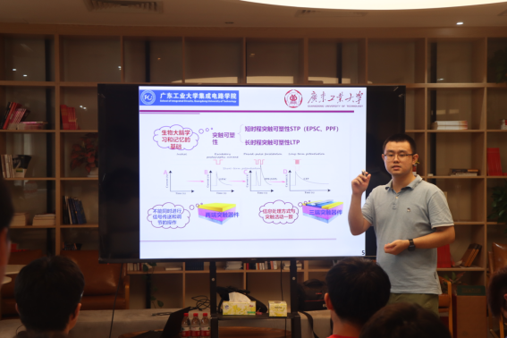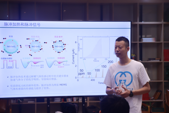 青年教师李明杰老师和倪尧老师。他们分别围绕"MEMS气体传感器的晶圆级制造及产业化"以及"人机同源电子器件——高度生物兼容化的人造神经与系统"两个主题,介绍了目前相关的科研成果,以及该技术广泛应用带来的显著社会效益和经济价值,并结合实际案例阐述了科技在推动新型工业化和新质生产力发展中的重要作用,鼓励同学们积极加入导师团队参与科研,开展科学研究,提升个人科研创新素养,主动加入科技强国的队伍中。