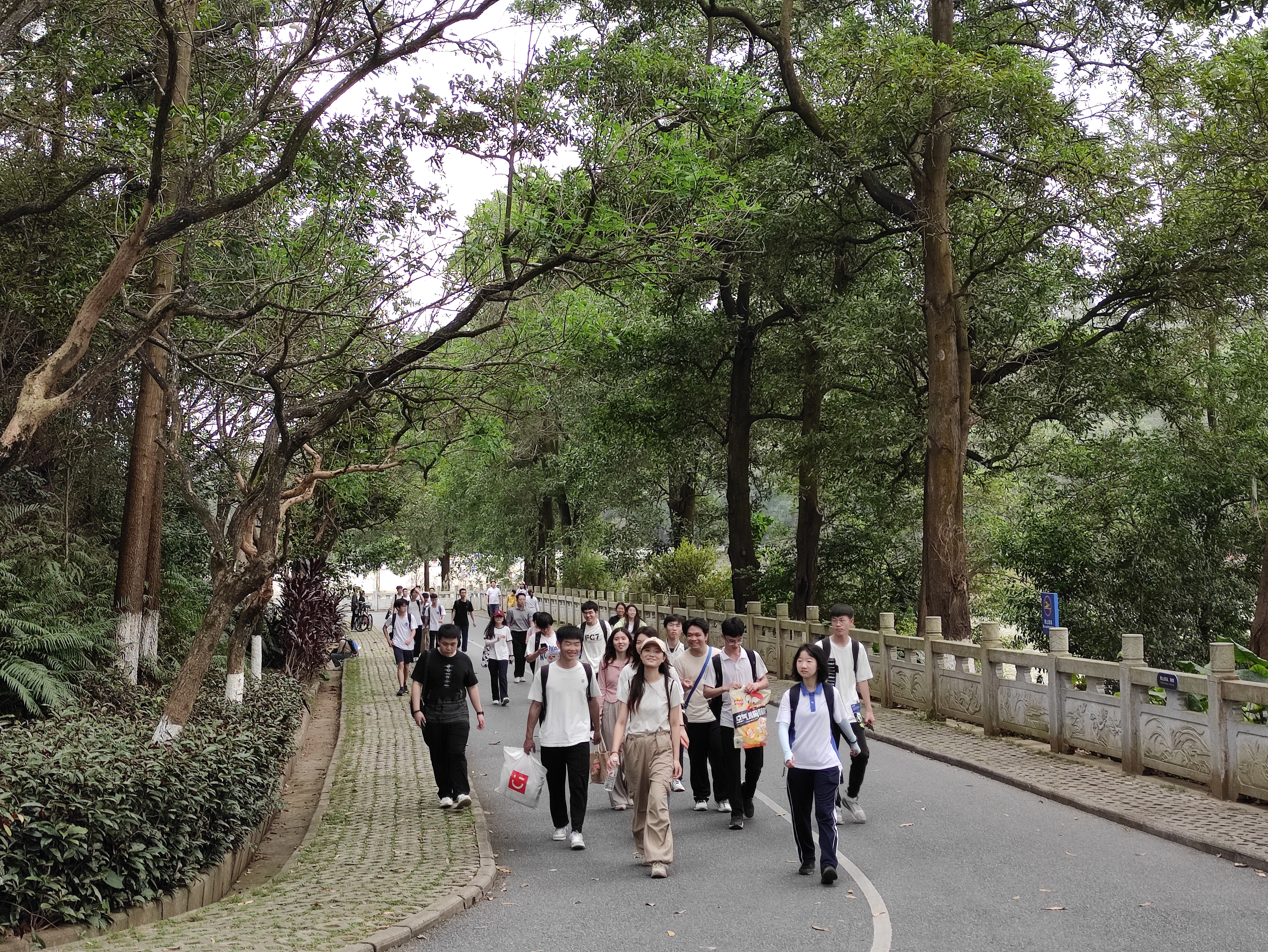 同学们沿着大夫山登山步道拾级而上,情绪高昂,一路欢声笑语,你追我赶,互相鼓励,充分展现出集成人勇毅前行的精神风采。途中,同学们佩戴手套,手持垃圾袋,不放过道路上、树林间、草丛中的任何垃圾,齐心协力,为营造干净、整洁、舒适的郊野环境贡献青春力量。同时,大家还向周围的市民进行文明劝导,不乱扔垃圾、垃圾分类丢进垃圾桶,自觉维护城市文明形象,做建设绿美广东的践行者、传播者、推动者、捍卫者。