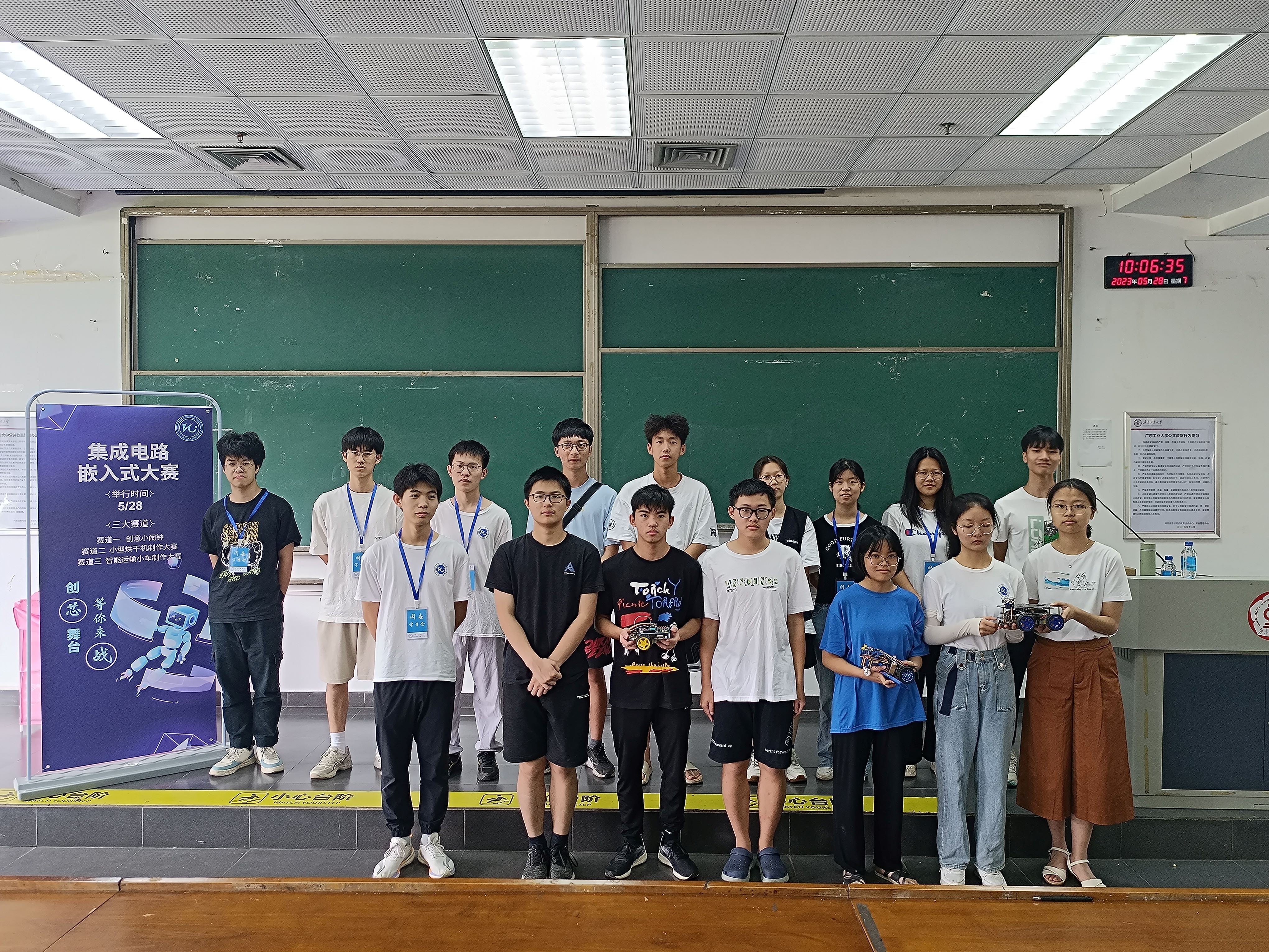 本次大赛以“展开科技翅膀,放飞科技理想”为主题,共设立了小型烘干机制作大赛、智能运输小车制作大赛、创意小闹钟三大赛道,将我们的日常生活所需与我们专业所学紧密结合起来。比赛当天,各组参赛选手根据主办方要求准时携带作品来到比赛现场。在经过工作人员的检查、拆解、实验等多方面考察评分后,最终选出了各个赛道的优胜作品。