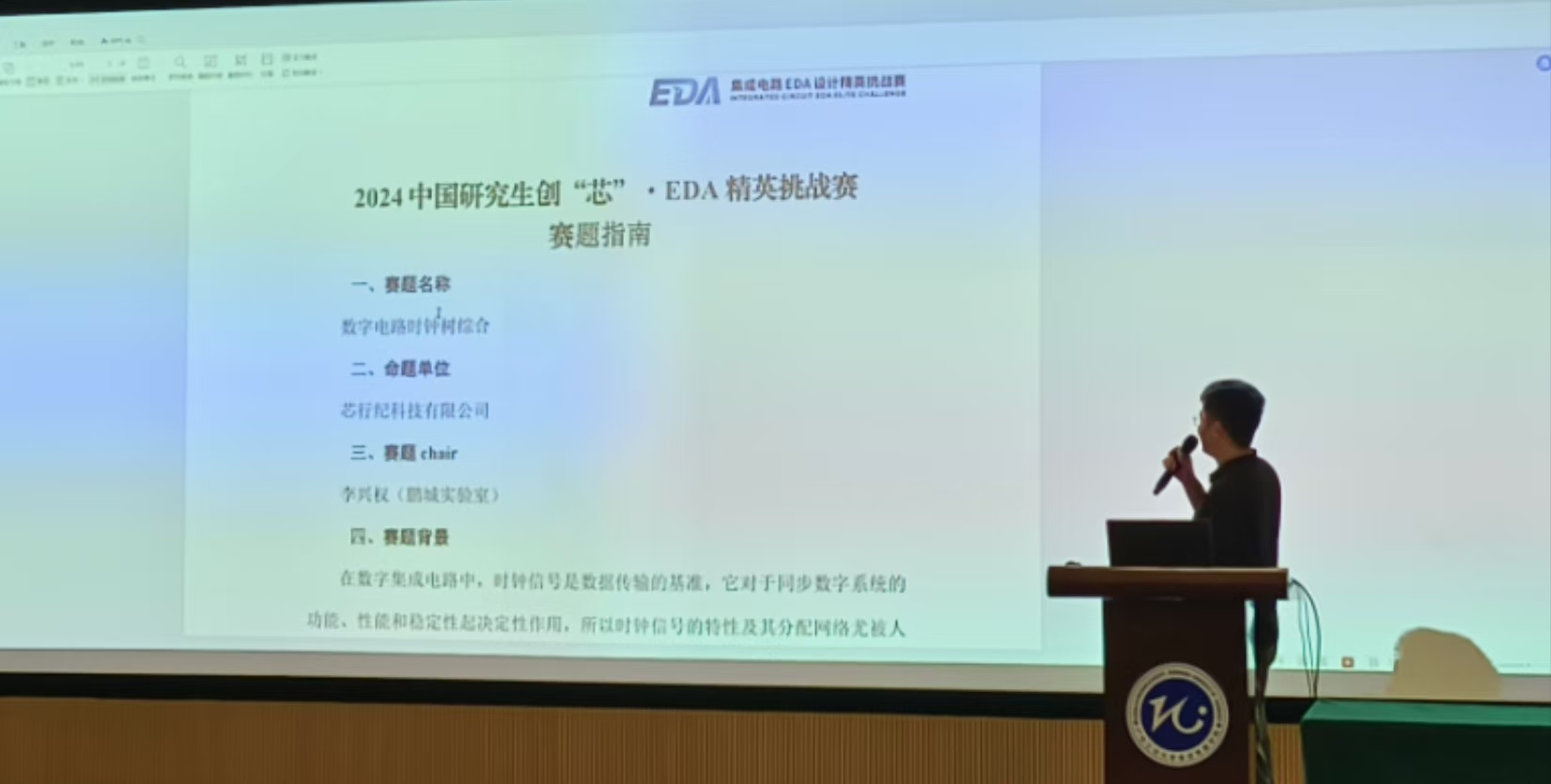 其次,赛事组委会姜甜老师介绍了EDA精英挑战赛的发展历程,同时强调了该竞赛为学生提供竞技平台、对学生实践能力提升的价值以及竞赛对企业创新、成果转化的积极作用。安路科技、鹏城实验室的专家分别就各自负责的赛题进行了深入解读,为学生们提供了宝贵的指导和建议。