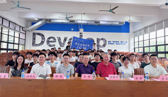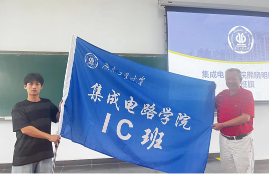 院长熊晓明为IC班授旗并寄语同学们,珍惜学校提供的优质学习机会,希望同学们之间加强交流互动,传承和发扬IC班的优良班风,以饱满的精神状态迎接新挑战,在IC班的学习过程中掌握真知识、硬技能,把自己打造成有信心、有实力、积极适应变化、时刻保持谦逊的集成电路人。