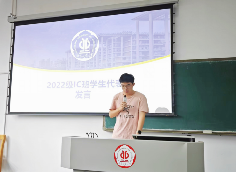 为同学们搭建了多专业融合发展的平台,提供了良好的学习环境和丰富的学习资源。苏黄石同学结合交叉融合学科的机遇与挑战,立足班长的职责,分享了对IC班学习与生活的期待和向往,立志保持求知的热情,以脚踏实地的态度,为我国集成电路产业奋斗不已。