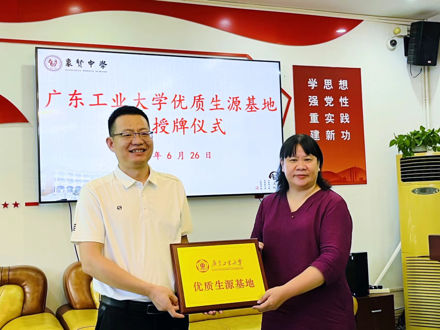 党委书记沈彬、副院长刘振、辅导员李秉寰一行前往广州市番禺区象贤中学举行优质生源基地签约暨授牌仪式,并开展本科招生宣传工作。