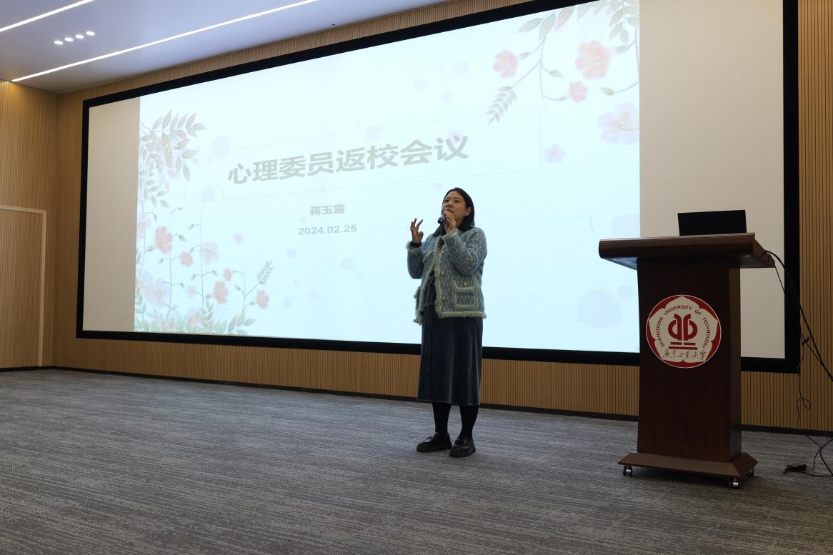 在理学馆224召开了心理委员返校会议。会议邀请了心理中心蒋玉露老师进行专题讲解,会议由蒋佳琪老师主持。