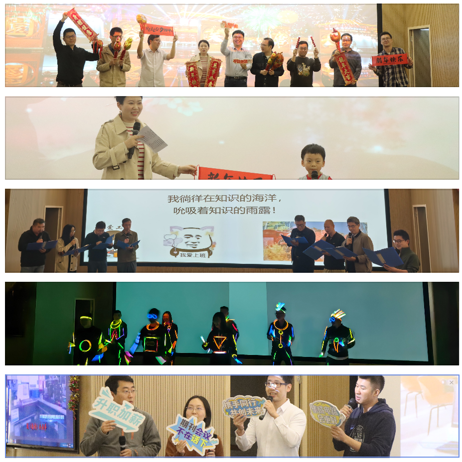 教师全员参与了迎春联欢活动,共同呈献了内容丰富、形式多样的文艺节目:《灯火里的中国》《一路生花》《长江之歌》《我爱上班》《健康歌》《明天会更好》《龙腾虎跃》,青春活力的舞蹈、幽默风趣的朗诵、洪亮激扬的歌声、欢快的亲子表演,锣鼓喧天、狮舞雄风,压轴节目舞狮表演把会场气氛推向高潮。辞旧迎新,洗去一年征尘;扬帆起航,重整行装再出发!