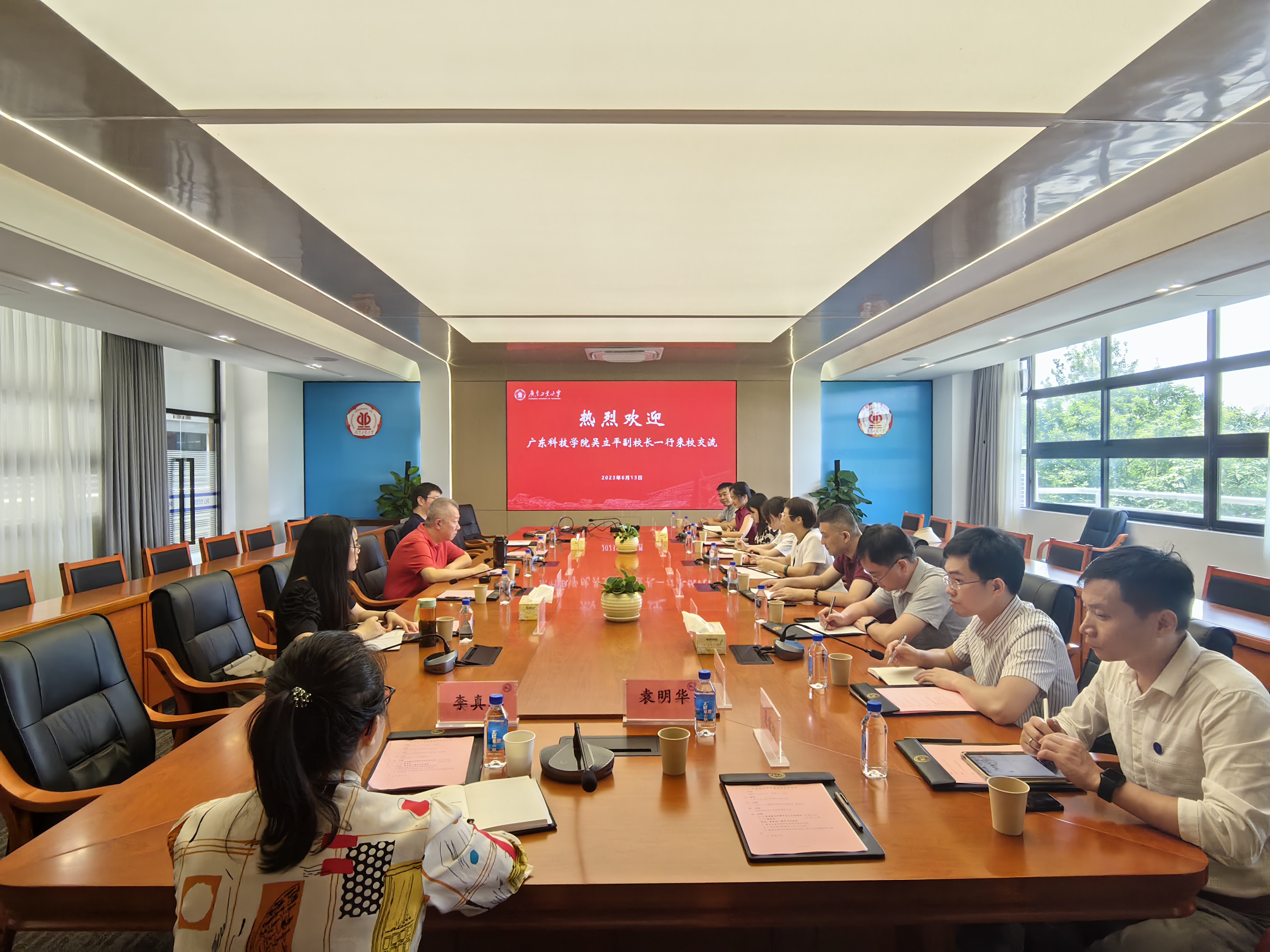 吴立平副校长一行11人到youjizz调研交流,youjizz院长熊晓明、副院长蔡述庭,教师代表夏益民、党政办公室主任谢春琼参加了座谈,双方在理学馆学术交流室围绕国家级现代产业youjizz