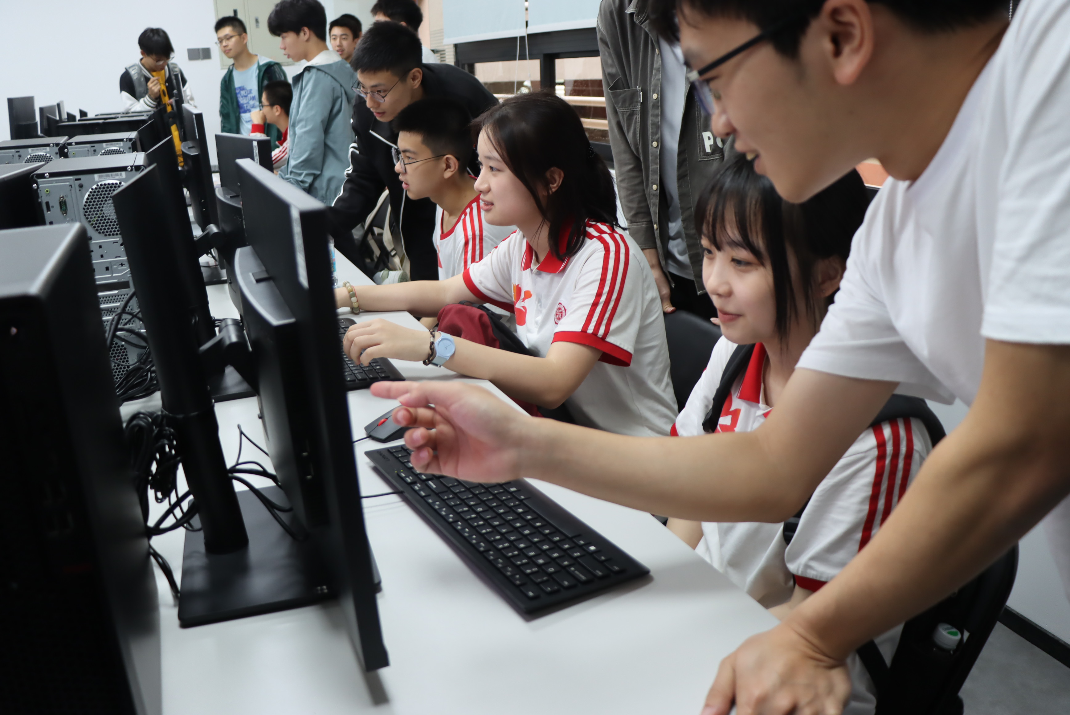 特色课程,并在教师的引导下,合作完成实操作业。中学生们积极提问,和师兄师姐展开交流,现场气氛热烈。