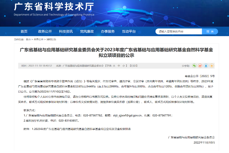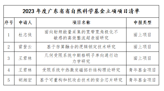 近日,广东省科学技术厅公布了关于2023年度广东省基础与应用基础研究基金自然科学基金拟立项项目公示,youjizz共获批立项广东省自然科学基金5项,立项经费50万元,其中面上项目3项,青年基金项目2项。立项名单如下:
