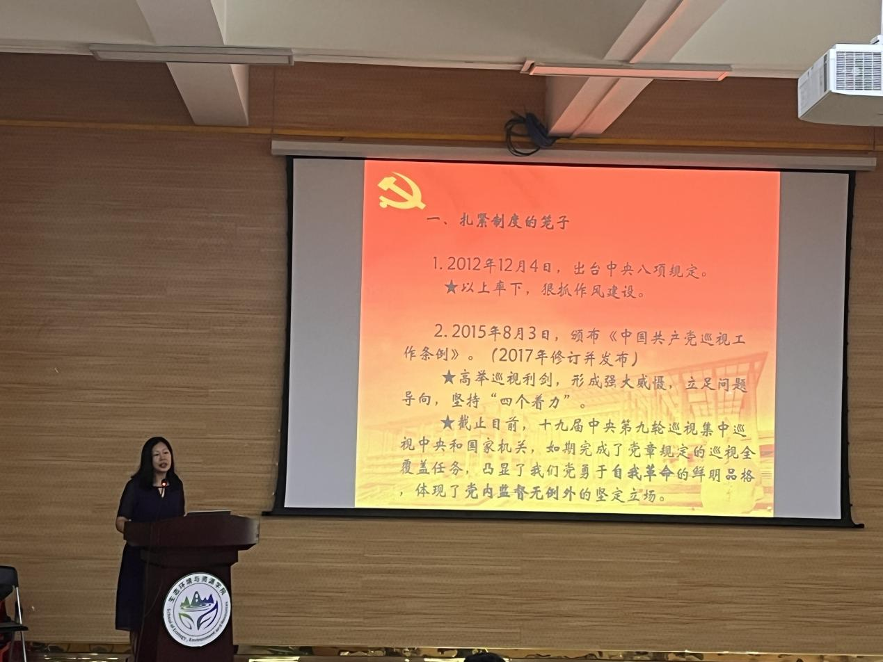 随后,谭娅作全面从严治党的纪检工作报告,强调我们始终把握制度的笼子,在抓好自身廉洁自律的同时,还要管好身边人,抓好本单位的党风廉政建设,做到始终心存敬畏、行有所止。教师们要不断提升自己的格局、胸怀、境界、视野,始终牢记教书育人的使命,多做有利于学生、多谋有利于学校发展的事。