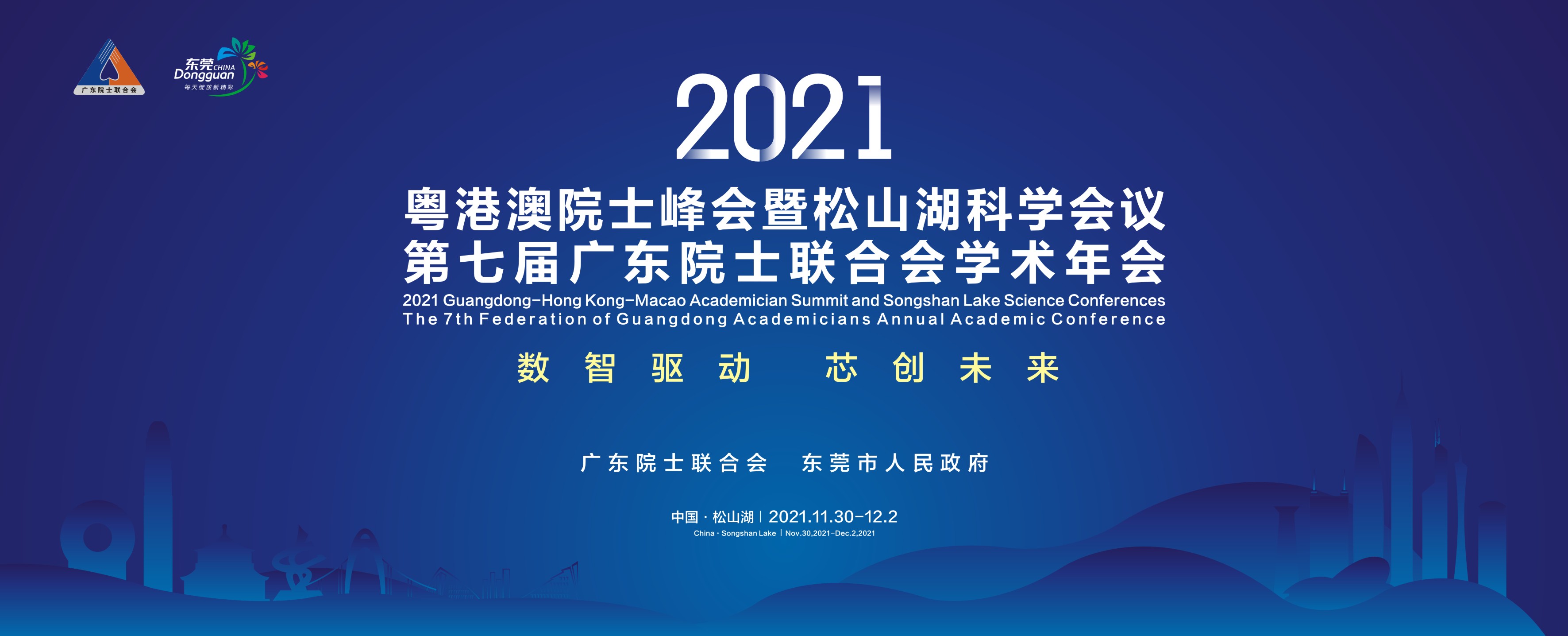 、中国工程院、香港特别行政区政府、澳门特别行政区政府、广东省人民政府的关心指导下,东莞市人民政府联合广东院士联合会于2021年11月30日-12月2日在东莞举办 2021 粤港澳院士峰会暨松山湖科学会议。