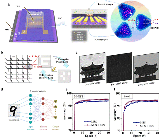 此外,HRAS器件还展现出卓越的应用潜力。研究团队利用其时空特性,成功实现了生物启发式加密应用,为信息安全处理提供了新的思路和平台。同时,基于 HRAS 的双栅极输入结构,提出了一种新型神经网络架构,能够有效辅助权重更新,并在神经网络任务中展现出增强的识别能力,为生物启发式计算的发展提供了新的方向。