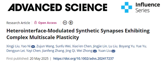 [1], , , , , , , ,et al. Heterointerface-Modulated Synthetic Synapses Exhibiting Complex Multiscale Plasticity. Advanced Science. DOI: 10.1002/advs.202417237