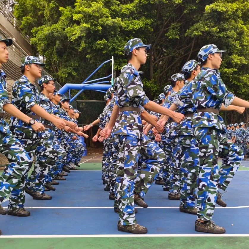 口号声震天动地,像惊雷劈开热浪,瞬间点燃全场。在这声音里,是十余天烈日下的咬牙坚持,是无数次肌肉酸疼后的绝不放弃。从青涩到坚毅,从散漫到凝聚,所有的汗水与拼搏,在此刻凝聚为这雷霆万钧的气势。