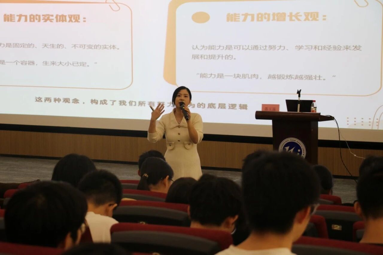 心理健康教育中心蒋玉露老师以“我们为何而努力?——解锁成长型思维的密码”为题作专题讲座。讲座由生态环境与资源学院心理指导老师欧少珍主持,200余名本科生参加了本次讲座。