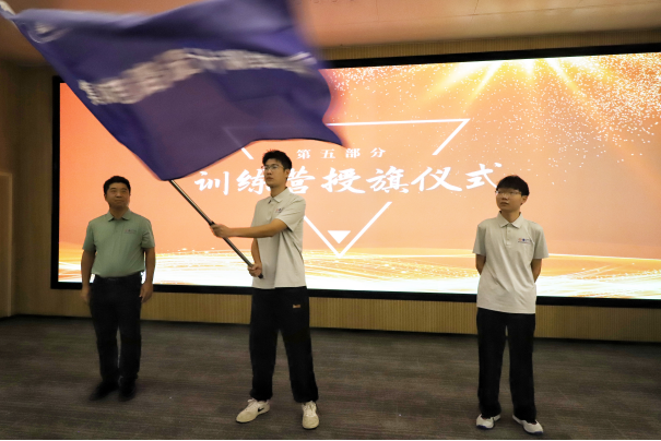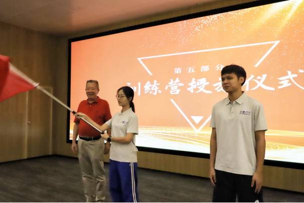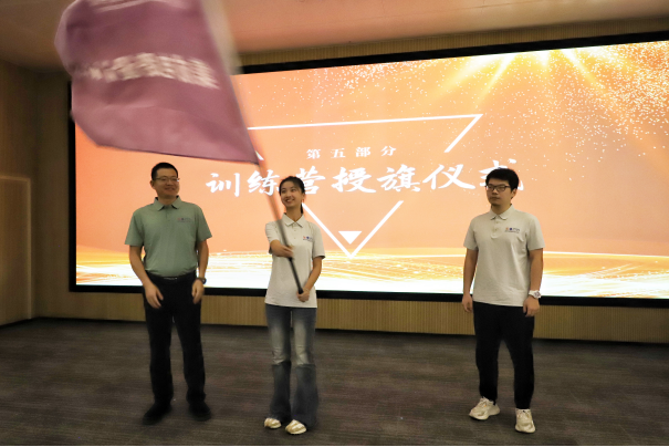 随后,youjizz 院长熊晓明、党委书记沈彬、副书记石宇杰分别为2024年集成电路设计训练营IC班、微电子班1班、微电子班2班授班旗。